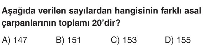 6. Sınıf Asal Sayılar ve Asal Çarpanlar Test 8
