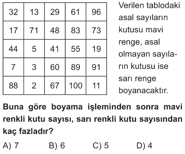 6. Sınıf Asal Sayılar ve Asal Çarpanlar Test 9
