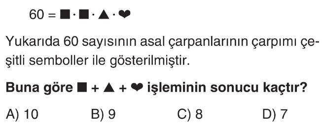 6. Sınıf Asal Sayılar ve Asal Çarpanlar Test 10
