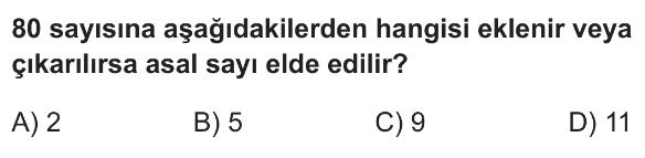 6. Sınıf Asal Sayılar ve Asal Çarpanlar Test 12