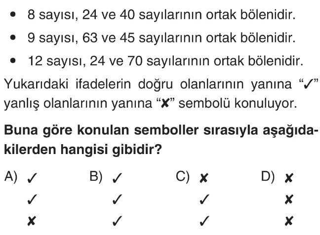 6. Sınıf Ortak Kat ve Ortak Bölen Test 3