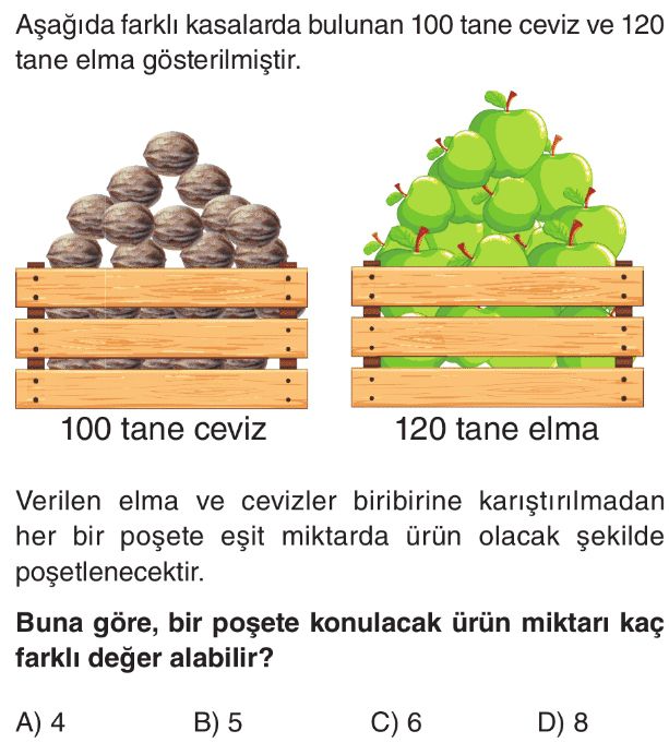 6. Sınıf Ortak Kat ve Ortak Bölen Test 4