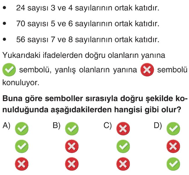 6. Sınıf Ortak Kat ve Ortak Bölen Test 5