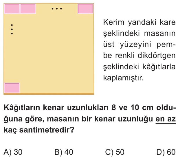 6. Sınıf Ortak Kat ve Ortak Bölen Test 5