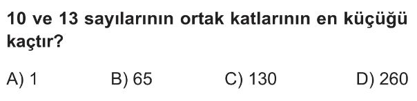 6. Sınıf Ortak Kat ve Ortak Bölen Test 5