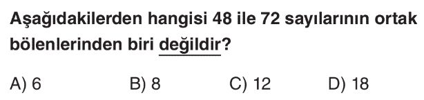 6. Sınıf Ortak Kat ve Ortak Bölen Test 7