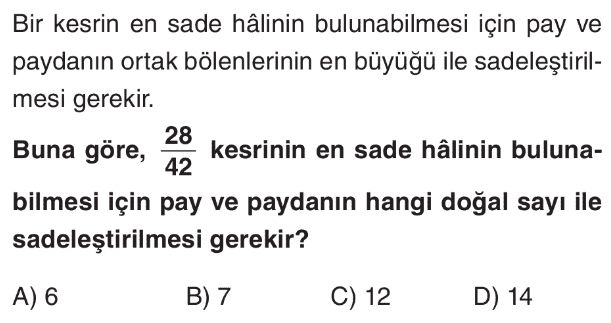 6. Sınıf Ortak Kat ve Ortak Bölen Test 8