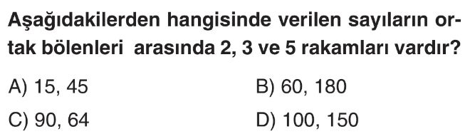 6. Sınıf Ortak Kat ve Ortak Bölen Test 8