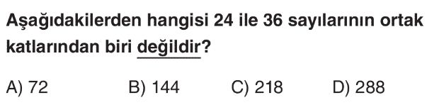 6. Sınıf Ortak Kat ve Ortak Bölen Test 9