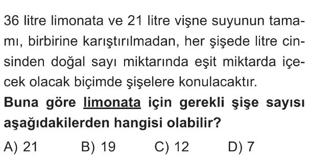 6. Sınıf Ortak Kat ve Ortak Bölen Test 9