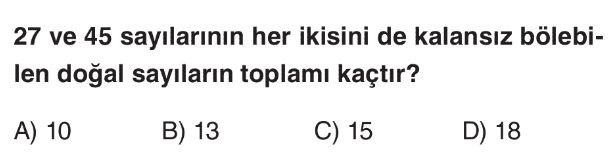 6. Sınıf Ortak Kat ve Ortak Bölen Test 9