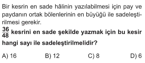 6. Sınıf Ortak Kat ve Ortak Bölen Test 10