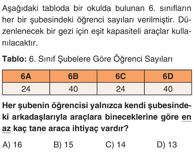 6. Sınıf Sayılar ve Nicelikler Tema Değerlendirme Test 2