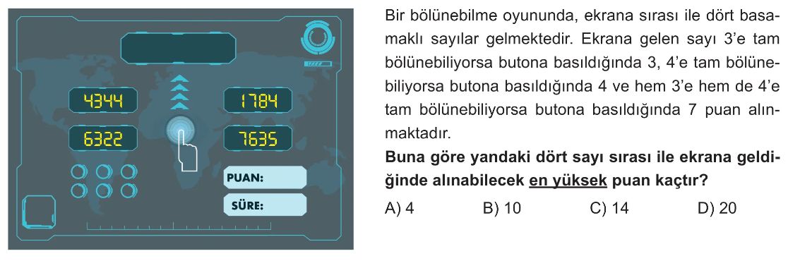 6. Sınıf Sayılar ve Nicelikler Tema Değerlendirme Test 4