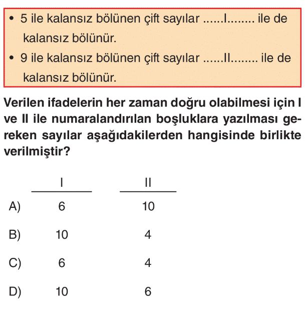 6. Sınıf Sayılar ve Nicelikler Tema Değerlendirme Test 5