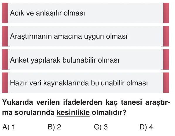 6. Sınıf Araştırma Süreci: Soru Oluşturma, Ölçütler, Planlama ve Anket Hazırlama Test 1