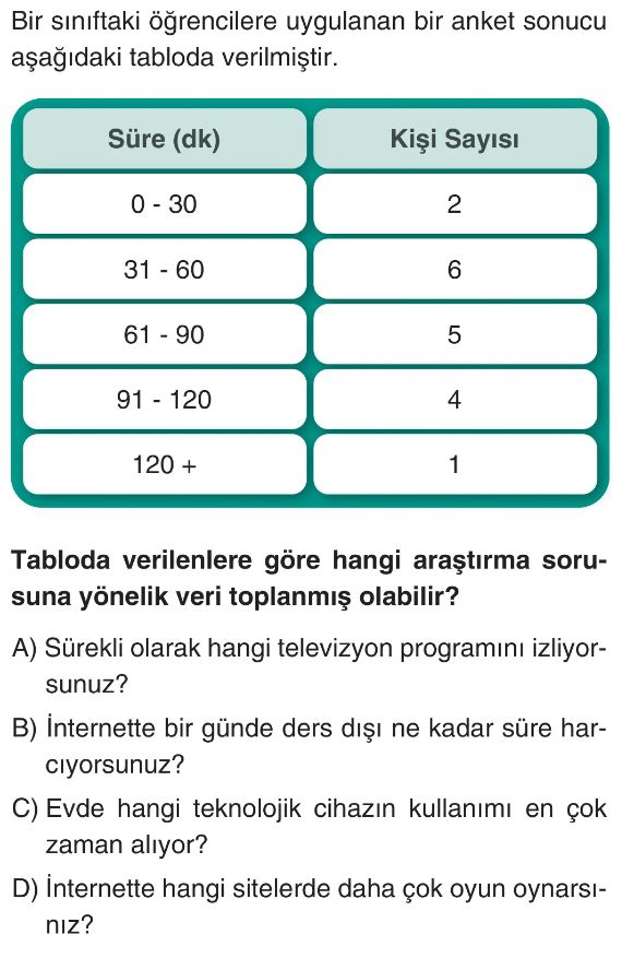 6. Sınıf Araştırma Süreci: Soru Oluşturma, Ölçütler, Planlama ve Anket Hazırlama Test 2