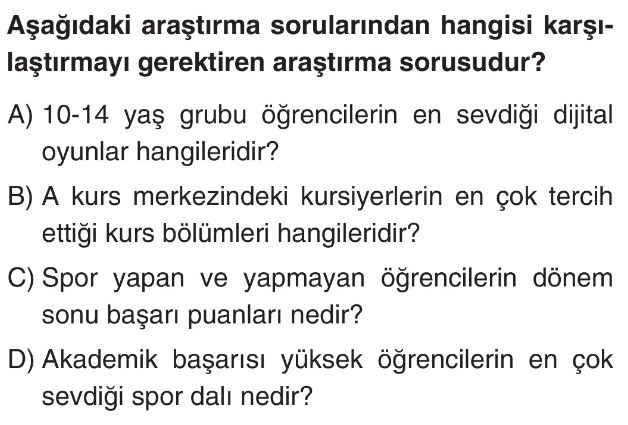 6. Sınıf Araştırma Süreci: Soru Oluşturma, Ölçütler, Planlama ve Anket Hazırlama Test 2