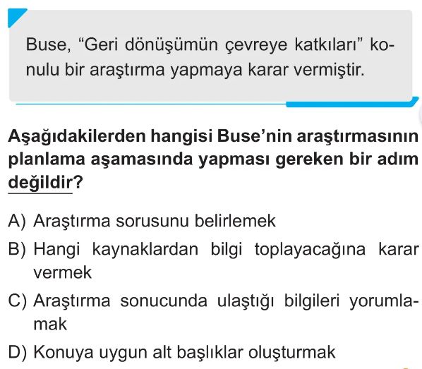 6. Sınıf Araştırma Süreci: Soru Oluşturma, Ölçütler, Planlama ve Anket Hazırlama Test 2