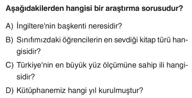 6. Sınıf Araştırma Süreci: Soru Oluşturma, Ölçütler, Planlama ve Anket Hazırlama Test 2