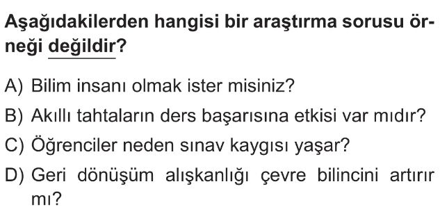 6. Sınıf Araştırma Süreci: Soru Oluşturma, Ölçütler, Planlama ve Anket Hazırlama Test 3