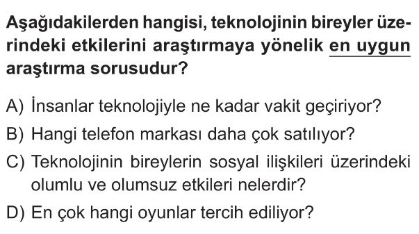 6. Sınıf Araştırma Süreci: Soru Oluşturma, Ölçütler, Planlama ve Anket Hazırlama Test 4