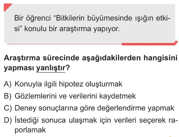 6. Sınıf Araştırma Süreci: Soru Oluşturma, Ölçütler, Planlama ve Anket Hazırlama Test 4