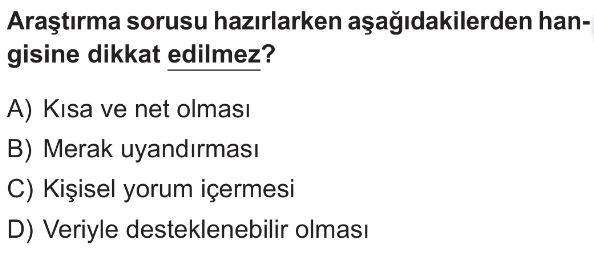 6. Sınıf Araştırma Süreci: Soru Oluşturma, Ölçütler, Planlama ve Anket Hazırlama Test 4