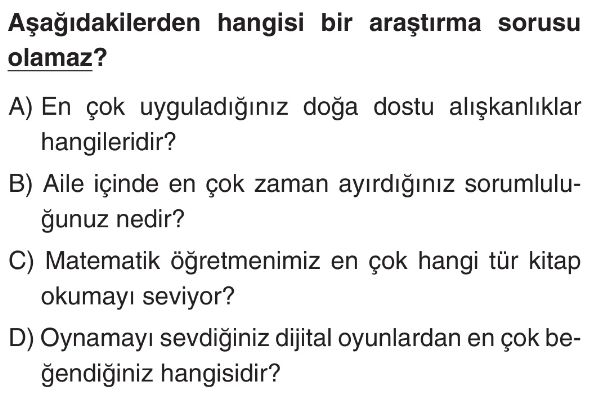 6. Sınıf Araştırma Süreci: Soru Oluşturma, Ölçütler, Planlama ve Anket Hazırlama Test 4