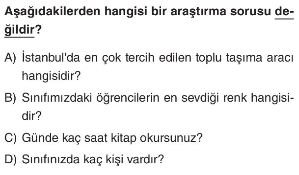 6. Sınıf Araştırma Süreci: Soru Oluşturma, Ölçütler, Planlama ve Anket Hazırlama Test 5