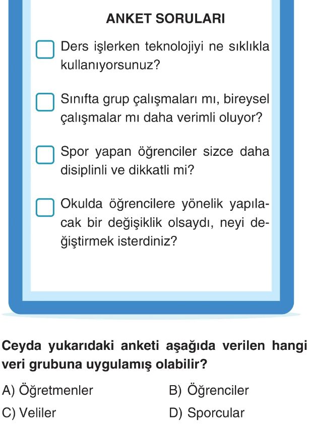 6. Sınıf Araştırma Süreci: Soru Oluşturma, Ölçütler, Planlama ve Anket Hazırlama Test 5