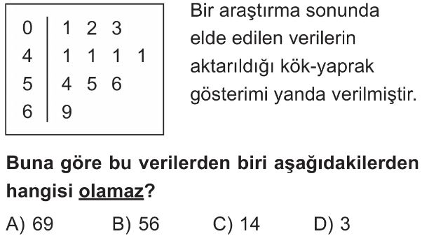 6. Sınıf Veri Görselleştirme ve Özetleme (Kök Yaprak Gösterimi) Test 1