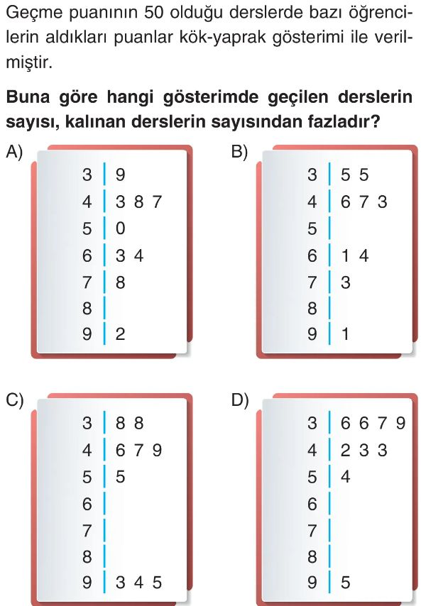 6. Sınıf Veri Görselleştirme ve Özetleme (Kök Yaprak Gösterimi) Test 2