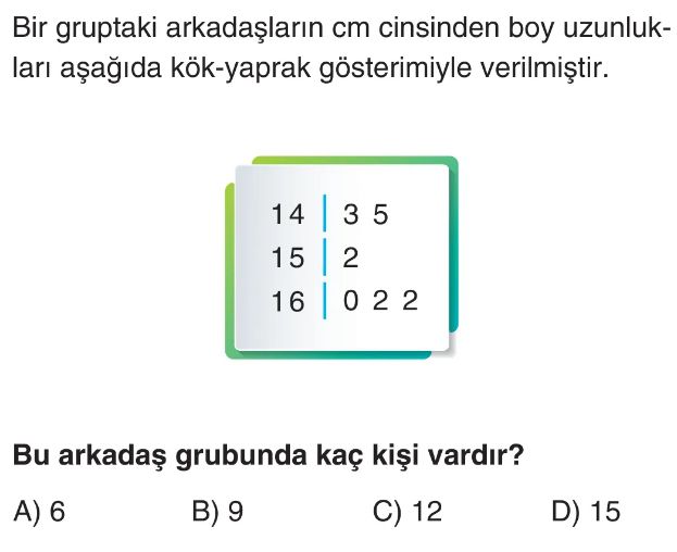 6. Sınıf Veri Görselleştirme ve Özetleme (Kök Yaprak Gösterimi) Test 2