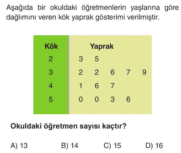 6. Sınıf Veri Görselleştirme ve Özetleme (Kök Yaprak Gösterimi) Test 3