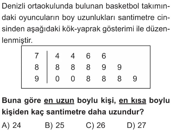 6. Sınıf Veri Görselleştirme ve Özetleme (Kök Yaprak Gösterimi) Test 3