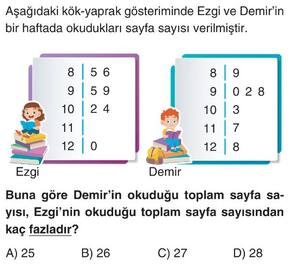 6. Sınıf Veri Görselleştirme ve Özetleme (Kök Yaprak Gösterimi) Test 3