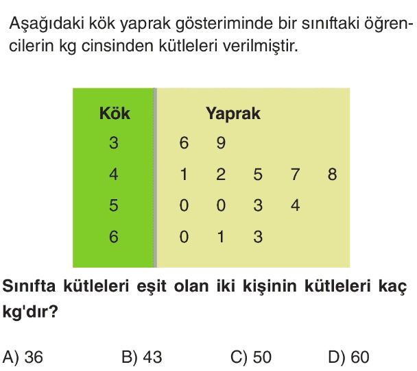 6. Sınıf Veri Görselleştirme ve Özetleme (Kök Yaprak Gösterimi) Test 4