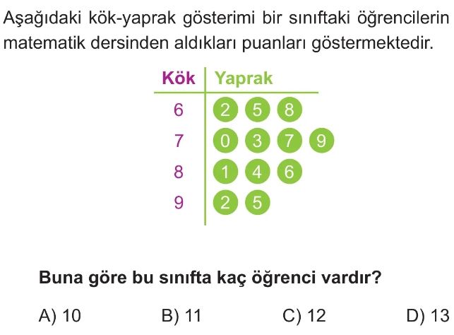 6. Sınıf Veri Görselleştirme ve Özetleme (Kök Yaprak Gösterimi) Test 4