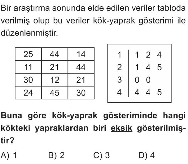 6. Sınıf Veri Görselleştirme ve Özetleme (Kök Yaprak Gösterimi) Test 4