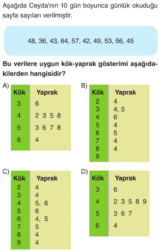 6. Sınıf Veri Görselleştirme ve Özetleme (Kök Yaprak Gösterimi) Test 4