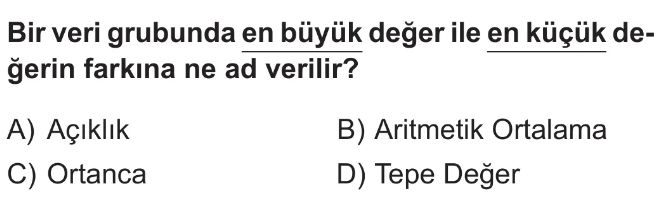 6. Sınıf Merkezi Eğilim Ölçüleri (Aritmetik Ortalama, Ortanca, Açıklık, Tepe Değer) Test 1