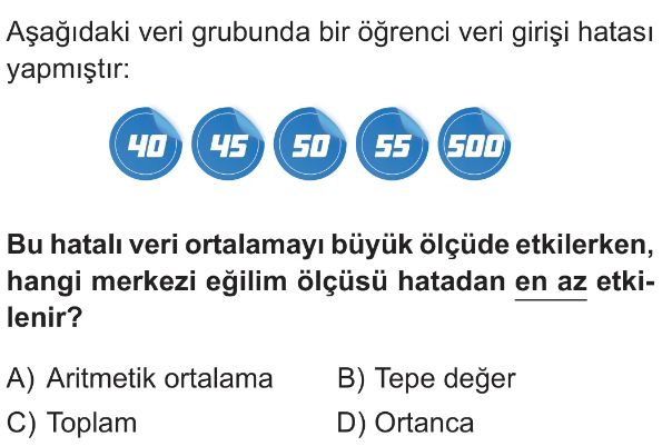 6. Sınıf Merkezi Eğilim Ölçüleri (Aritmetik Ortalama, Ortanca, Açıklık, Tepe Değer) Test 1