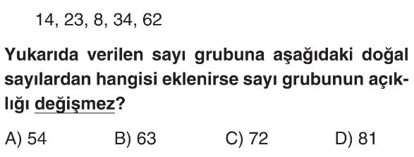 6. Sınıf Merkezi Eğilim Ölçüleri (Aritmetik Ortalama, Ortanca, Açıklık, Tepe Değer) Test 1