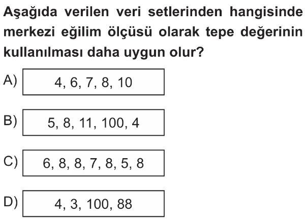6. Sınıf Merkezi Eğilim Ölçüleri (Aritmetik Ortalama, Ortanca, Açıklık, Tepe Değer) Test 2