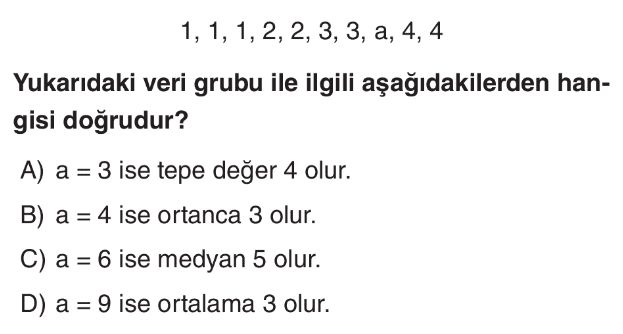 6. Sınıf Merkezi Eğilim Ölçüleri (Aritmetik Ortalama, Ortanca, Açıklık, Tepe Değer) Test 3