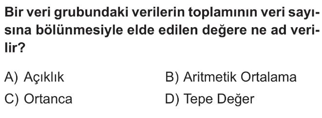 6. Sınıf Merkezi Eğilim Ölçüleri (Aritmetik Ortalama, Ortanca, Açıklık, Tepe Değer) Test 3