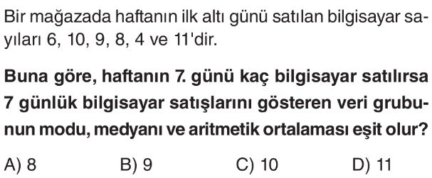 6. Sınıf Merkezi Eğilim Ölçüleri (Aritmetik Ortalama, Ortanca, Açıklık, Tepe Değer) Test 3