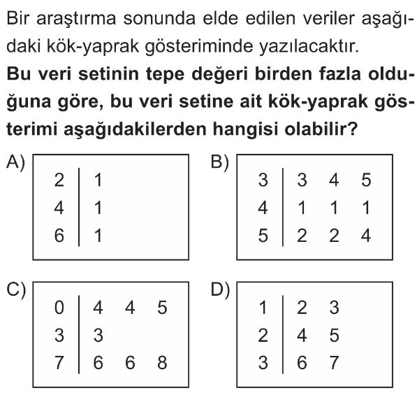 6. Sınıf Merkezi Eğilim Ölçüleri (Aritmetik Ortalama, Ortanca, Açıklık, Tepe Değer) Test 4
