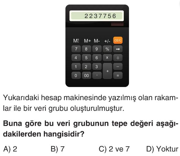 6. Sınıf Merkezi Eğilim Ölçüleri (Aritmetik Ortalama, Ortanca, Açıklık, Tepe Değer) Test 4